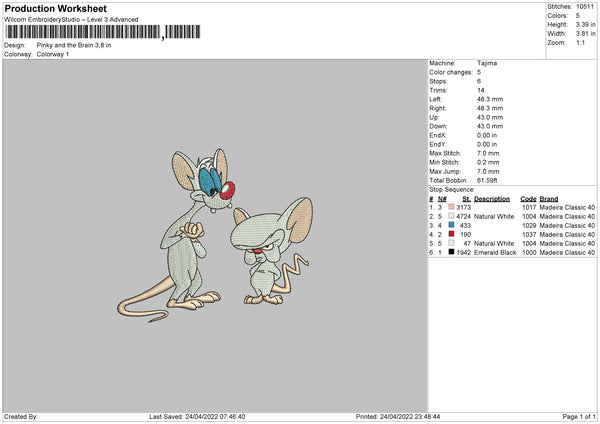 Pinky And Brain Embroidery File 4 size