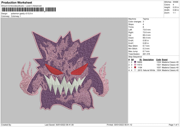 Pokemon Gastly V3 Embroidery File 4 size