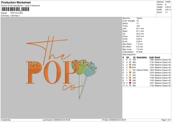 Pop Co Embroidery File 6 sizes
