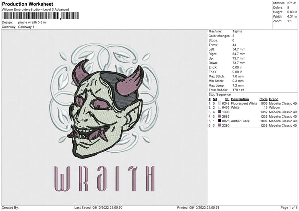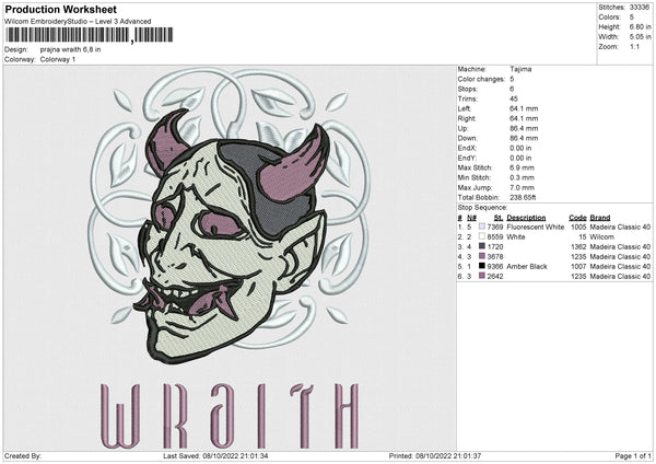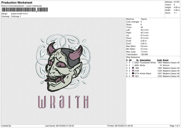 Prajna Wraith Embroidery File 4 size