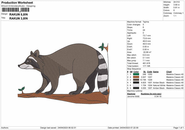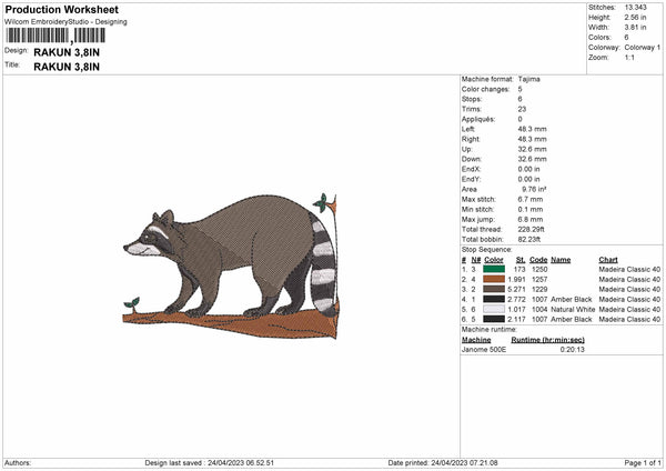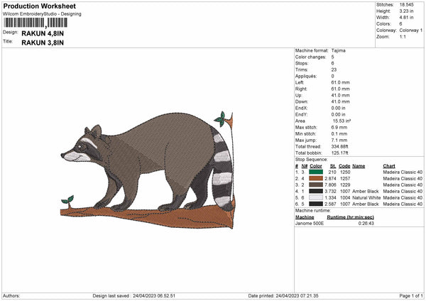 Rakun Embroidery File 6 sizes