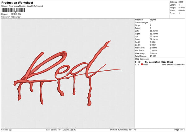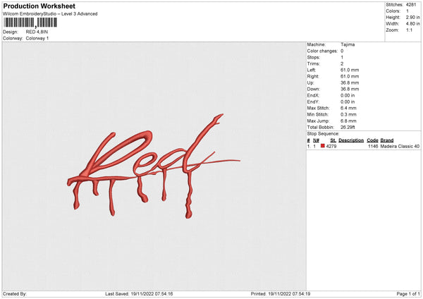 RED Embroidery File 4 size