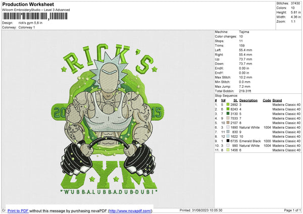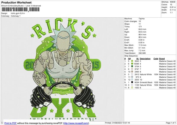 Rick's Gym Embroidery File 6 size