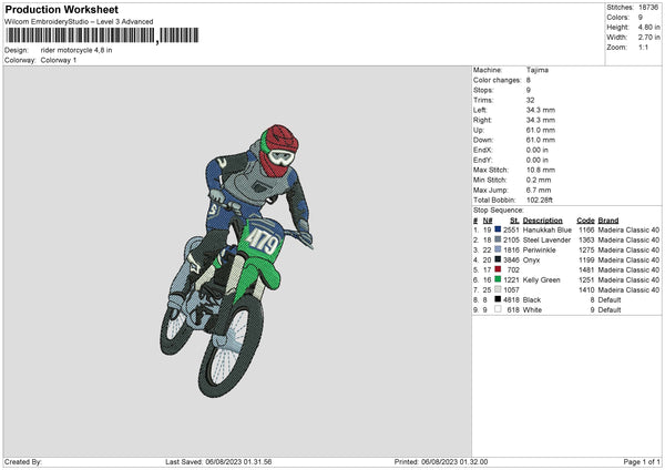 Rider Motorcycle Embroidery File 6 sizes