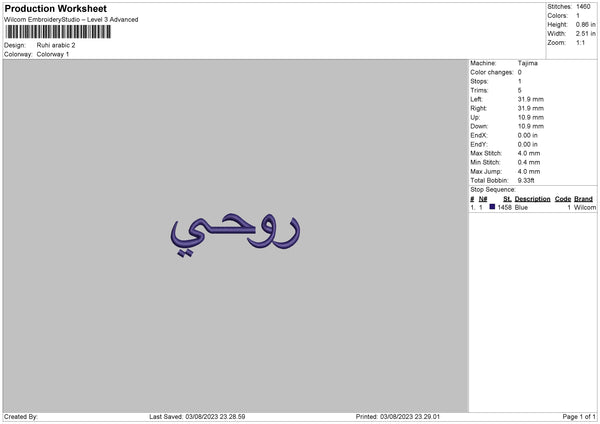 Ruhi Arabic Embroidery File 6 sizes