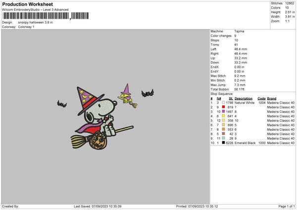 Snoopy Halloween 23 Embroidery File 6 sizes