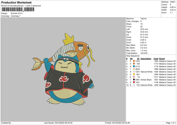 Snorlax Embroidery File 6 sizes