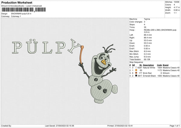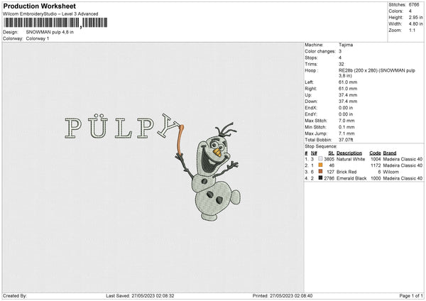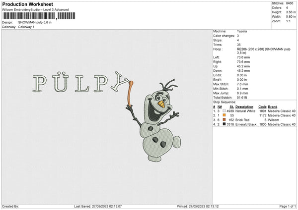 SNOWMAN PULP Embroidery File 4 size