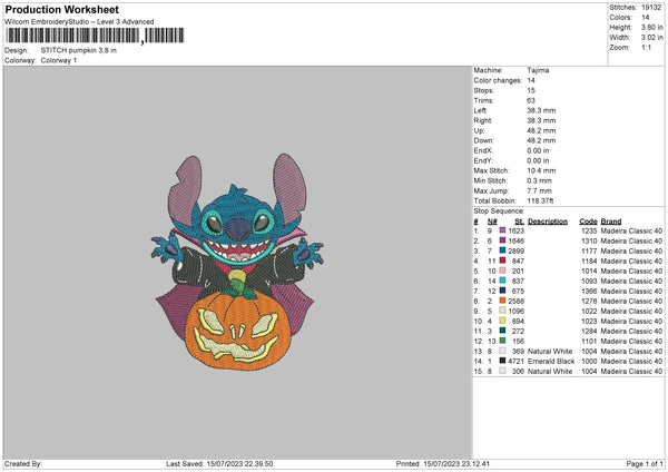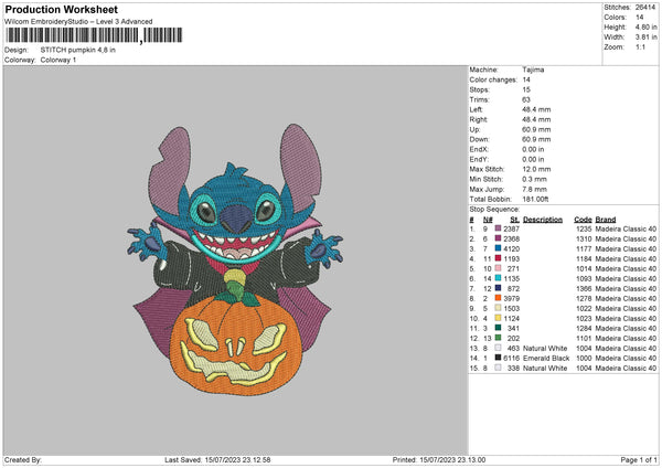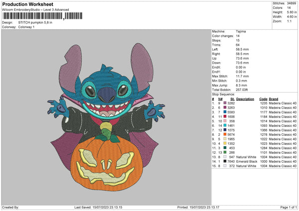 Stitch Pumpkin 23 Embroidery File 6 sizes