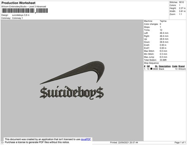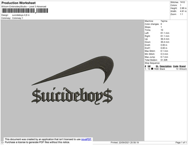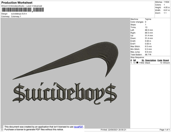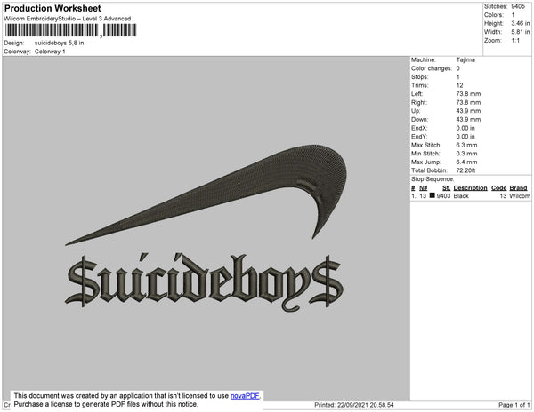 Suicideboys Swoosh Embroidery File 4 size