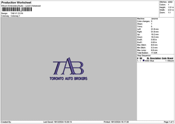 Tab V1 V2 Embroidery File 6 sizes