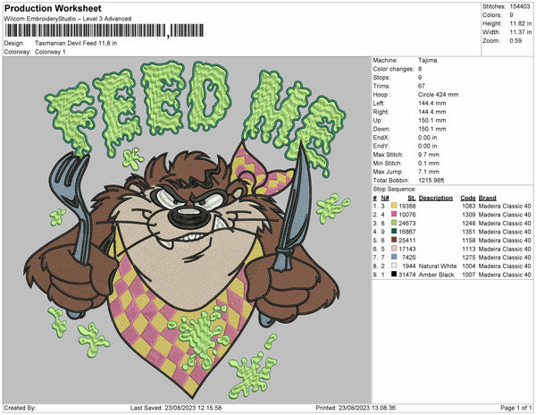 Nike Tasmanian Devil Feed Big Size Embroidery File