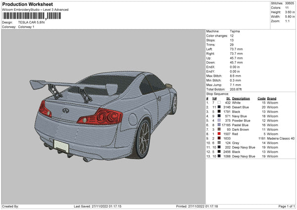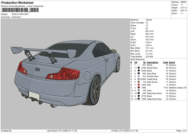 Tesla Car Embroidery File 6 sizes