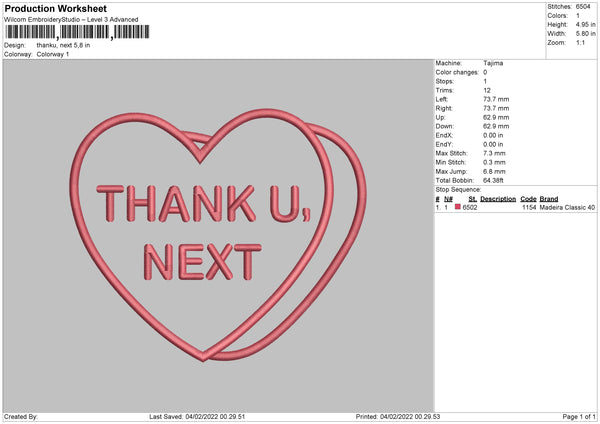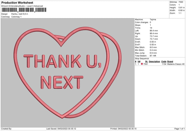 Thank U Next Embroidery File 4 size