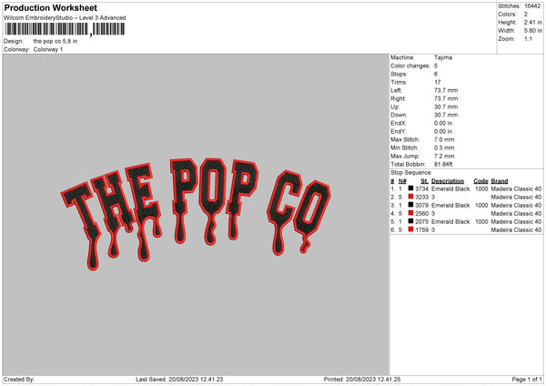 The Pop Embroidery File 6 sizes