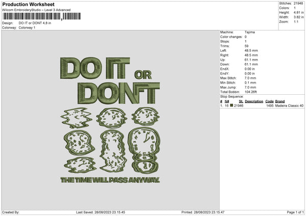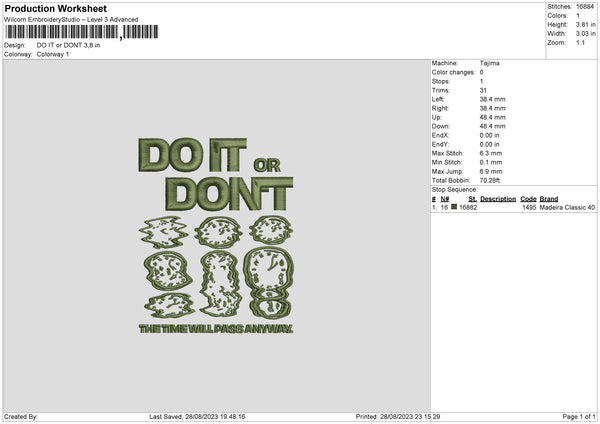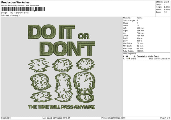 The Time Embroidery File 6 sizes
