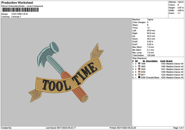 Tooltimetext Embroidery File 6 sizes