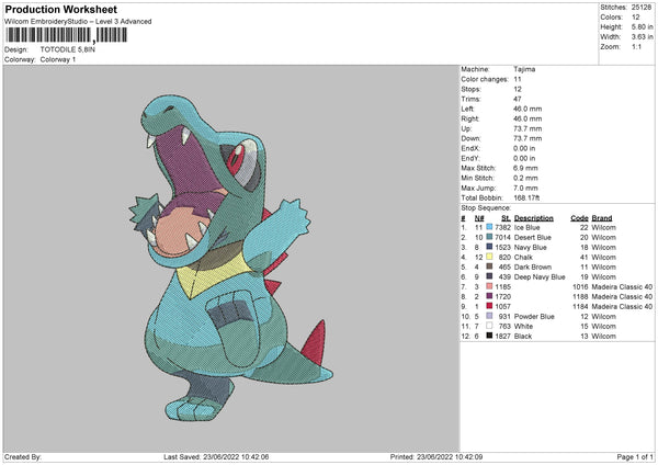 Totodile V2 Embroidery File 4 size
