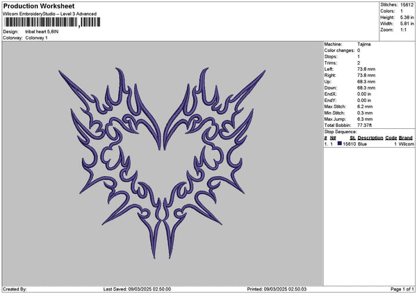 Tribal Heart Embroidery File 6 sizes