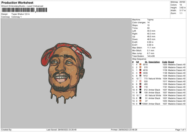 Tupac Shakur Embroidery File 5 sizes