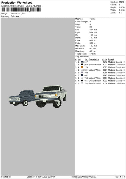 Two Trucks Embroidery File 4 size