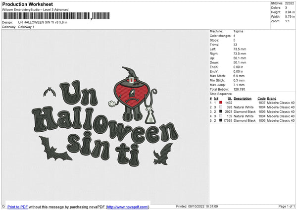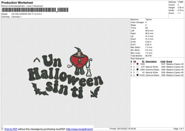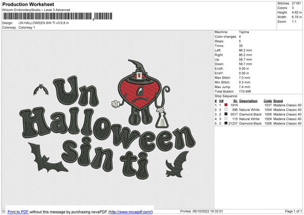 UN HALLOWEEN SIN TI Embroidery File 4 size