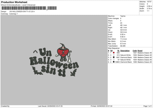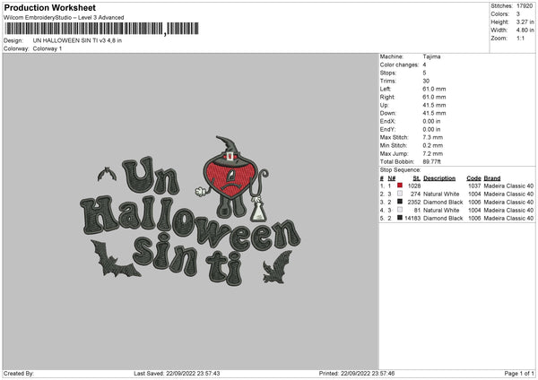 Un Halloween Sin Ti v1 Emboidery File 6 sizes
