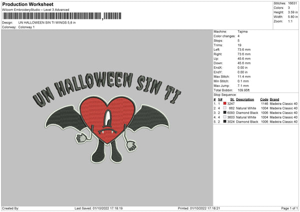Un Halloween Sin Ti Wings Embroidery File 5 sizes