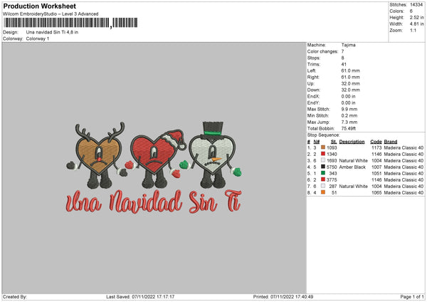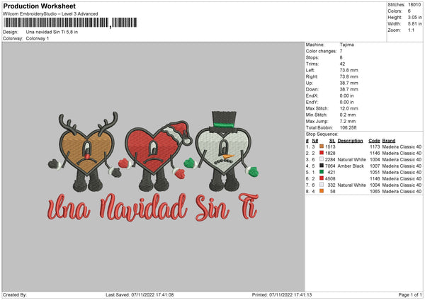 Una Navidad Sin Ti Embroidery File 6 sizes