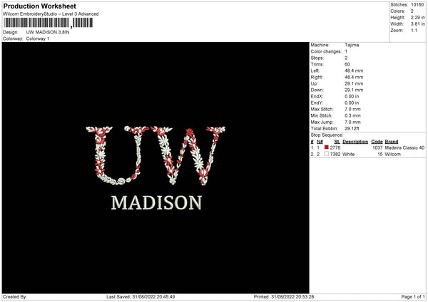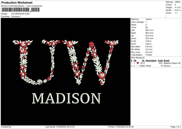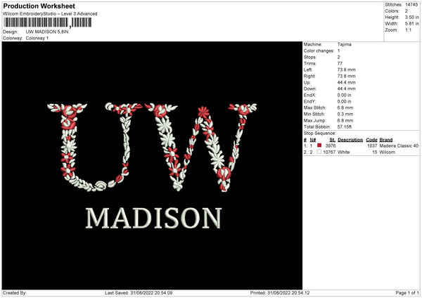 UW Madison Embroidery File 5 sizes
