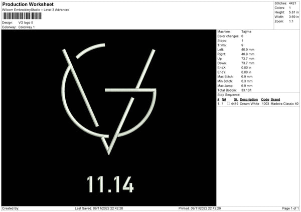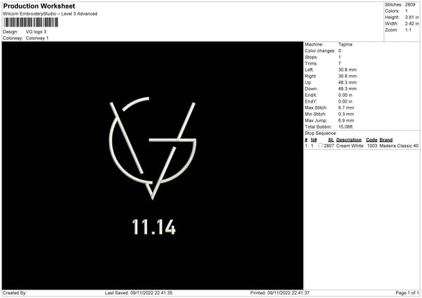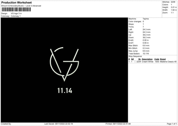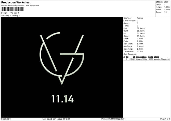 VG Logo Embroidery File 6 sizes