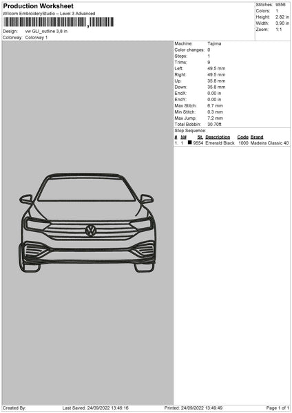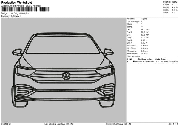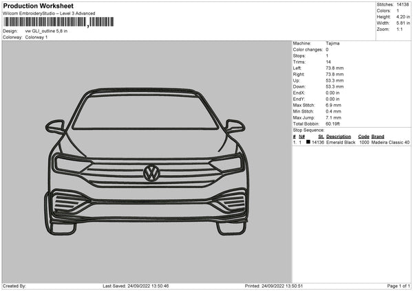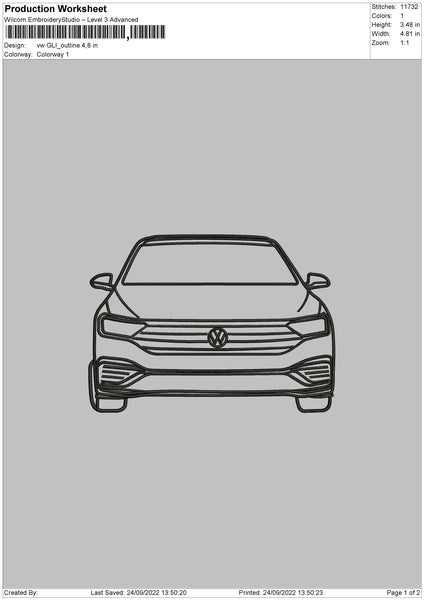 VW Gli Outline V2 Embroidery File 5 sizes