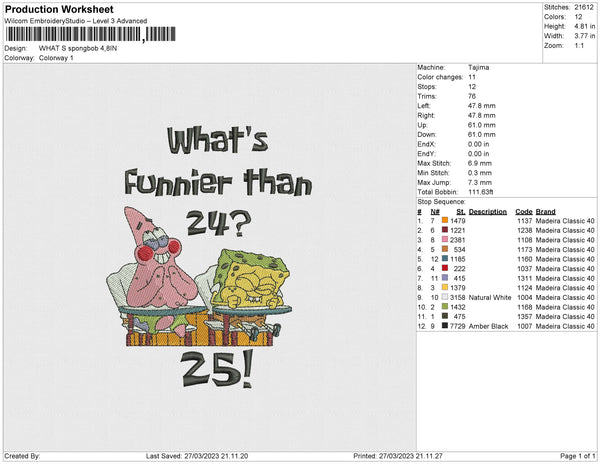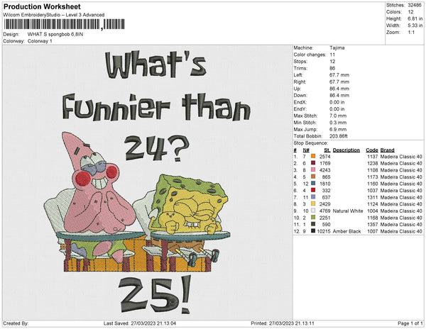 what s spongbob Embroidery File 4 size
