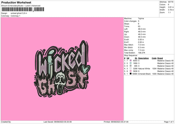 Wicked Ghost Embroiery File 6 sizes