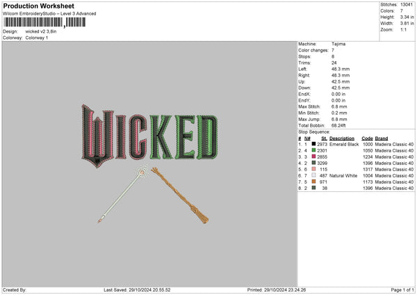 Wickedtext 02 Embroidery File 6 sizes