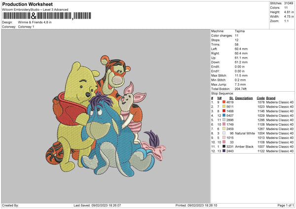 Winnie N Friends 02 Embroidery File 6 sizes