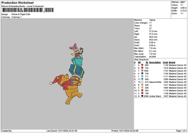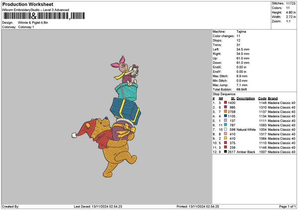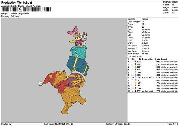 Winnie Xmas 1311 Embroidery File 6 sizes