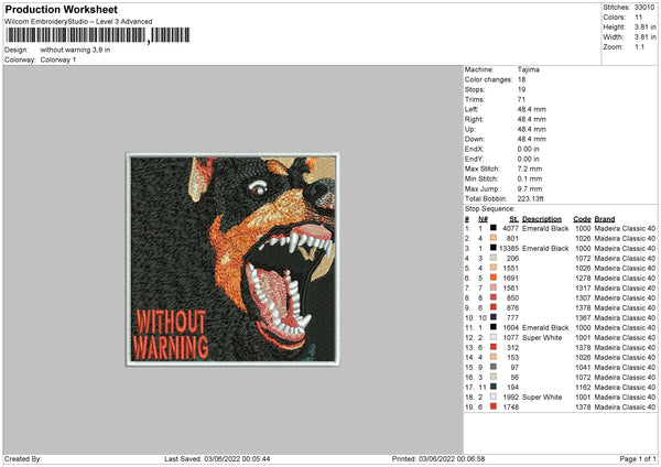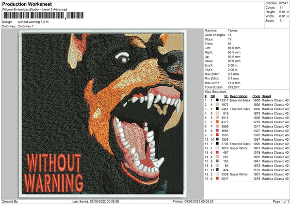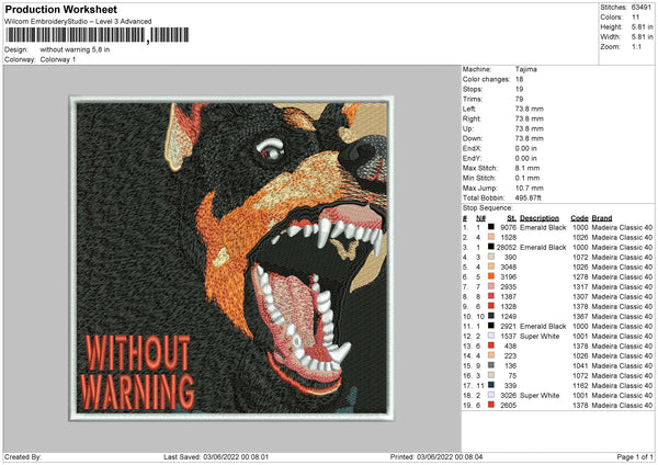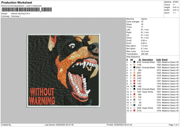 Without Warning Embroidery File 4 size