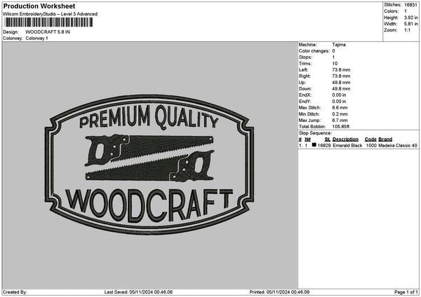 Woodcrafttext Embroidery File 6 sizes