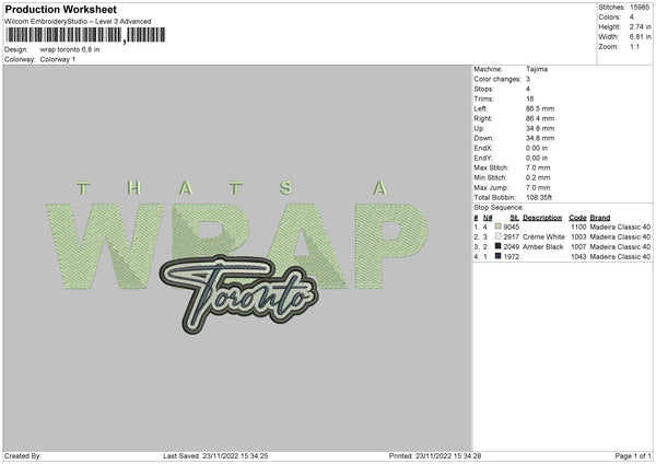 Wrap Toronto Embroidery File 6 sizes