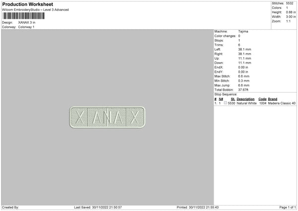 Xanax Embroidery File 6 sizes