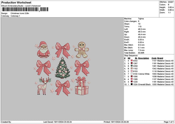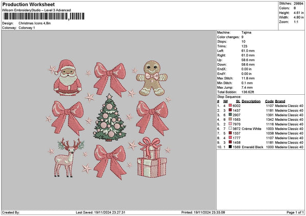 Xmasicons 24 Embroidery File 6 sizes