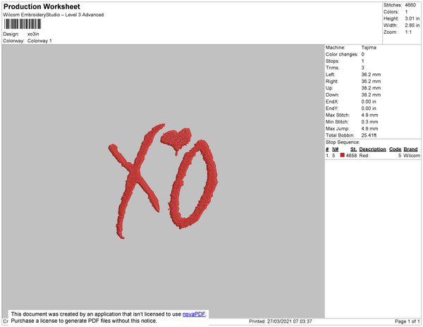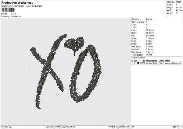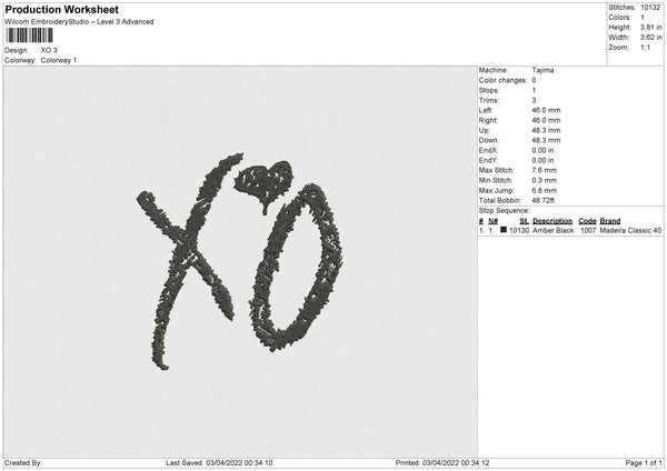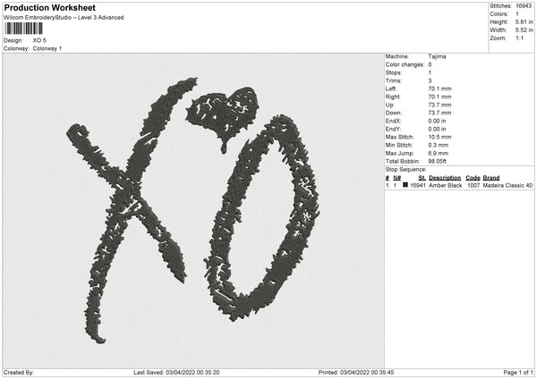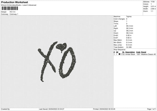 XO Embroidery File 4 size