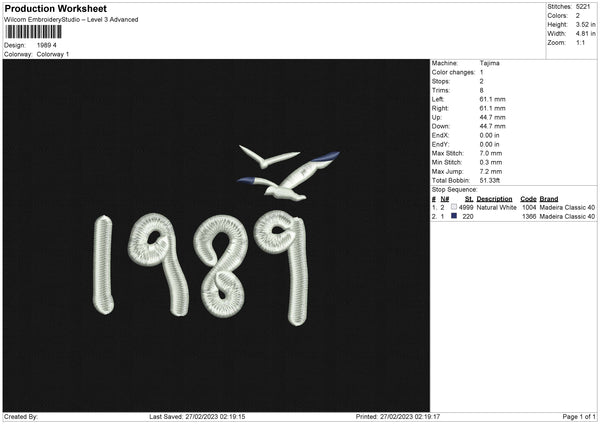 Year Number Embroidery File 6 sizes