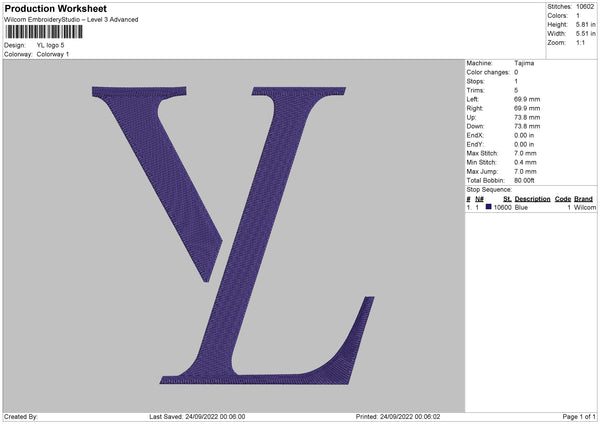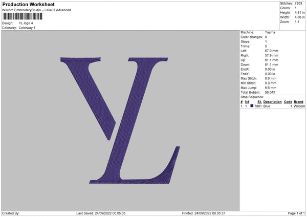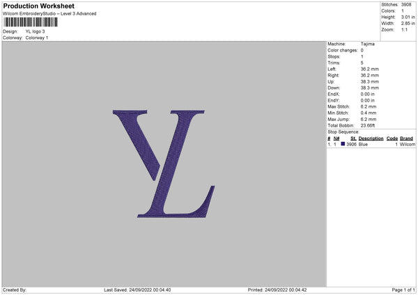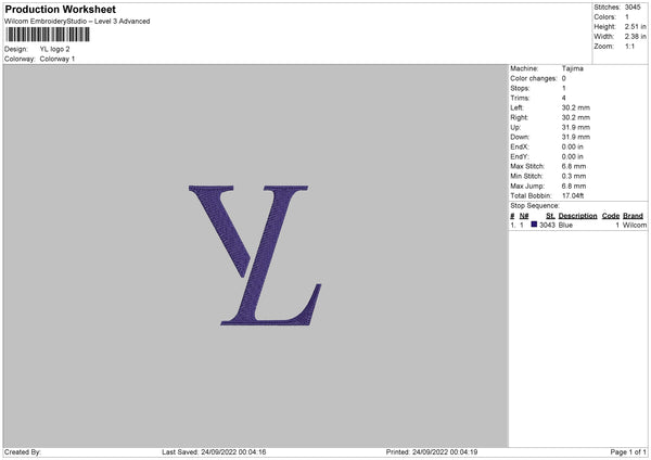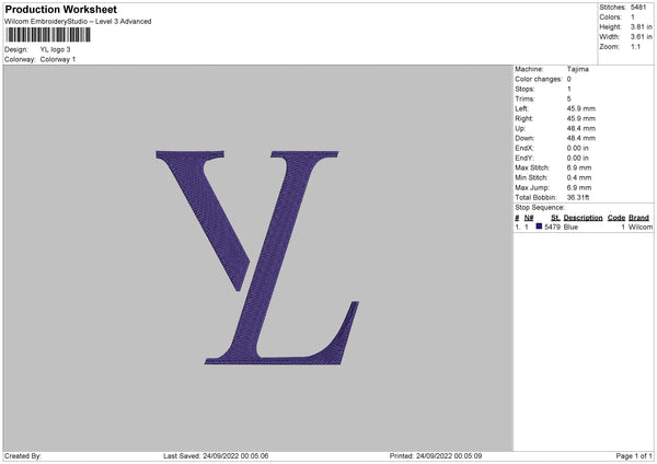 YL Logo Embroidery File 7 sizes