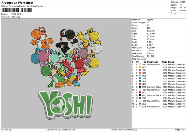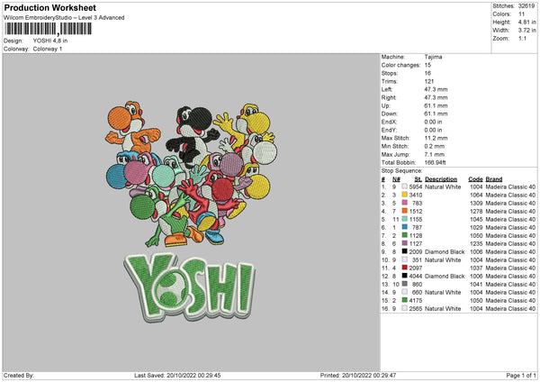 Yoshi Embroidery File 6 sizes
