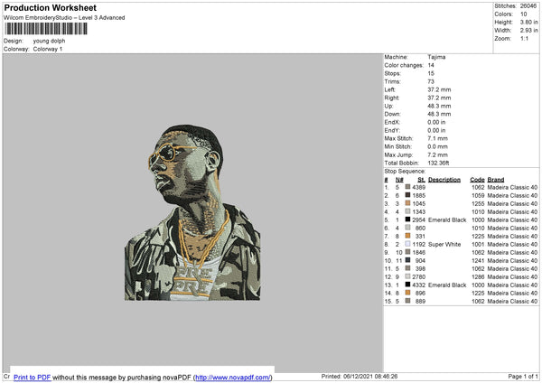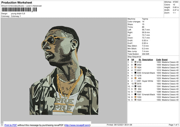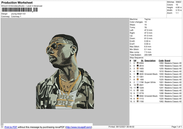 Young Dolph Embroidery File 4 size