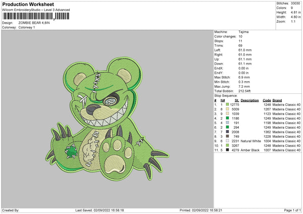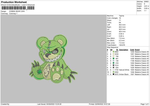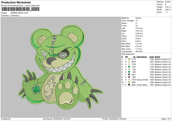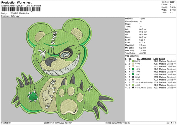 Zombie Bear Embroidery File 5 sizes